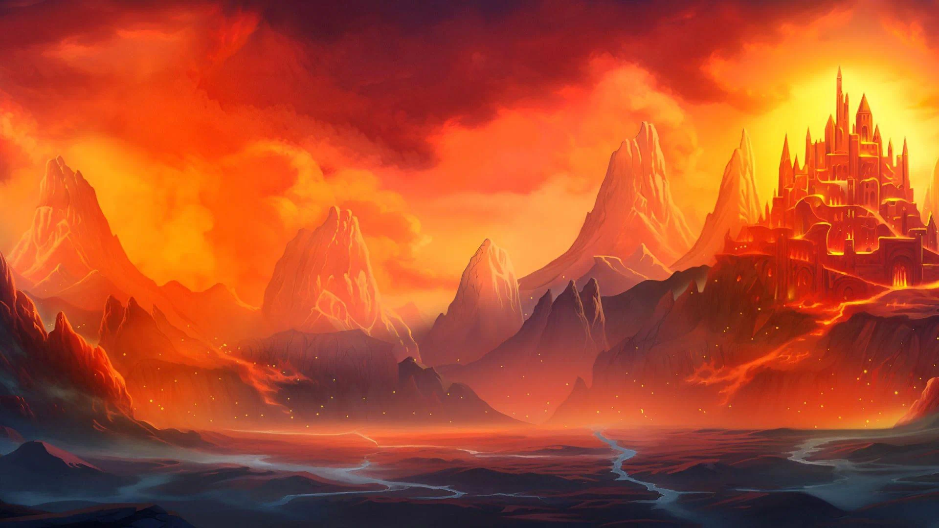 High atop the molten peaks of the Crimson Range stood the Castle of Fire, a magnificent fortress crafted from obsidian and gold, glowing eternally against the amber sky. The castle was home to the flame-haired Empress Lyra, whose beauty was matched only by her power over the elements.