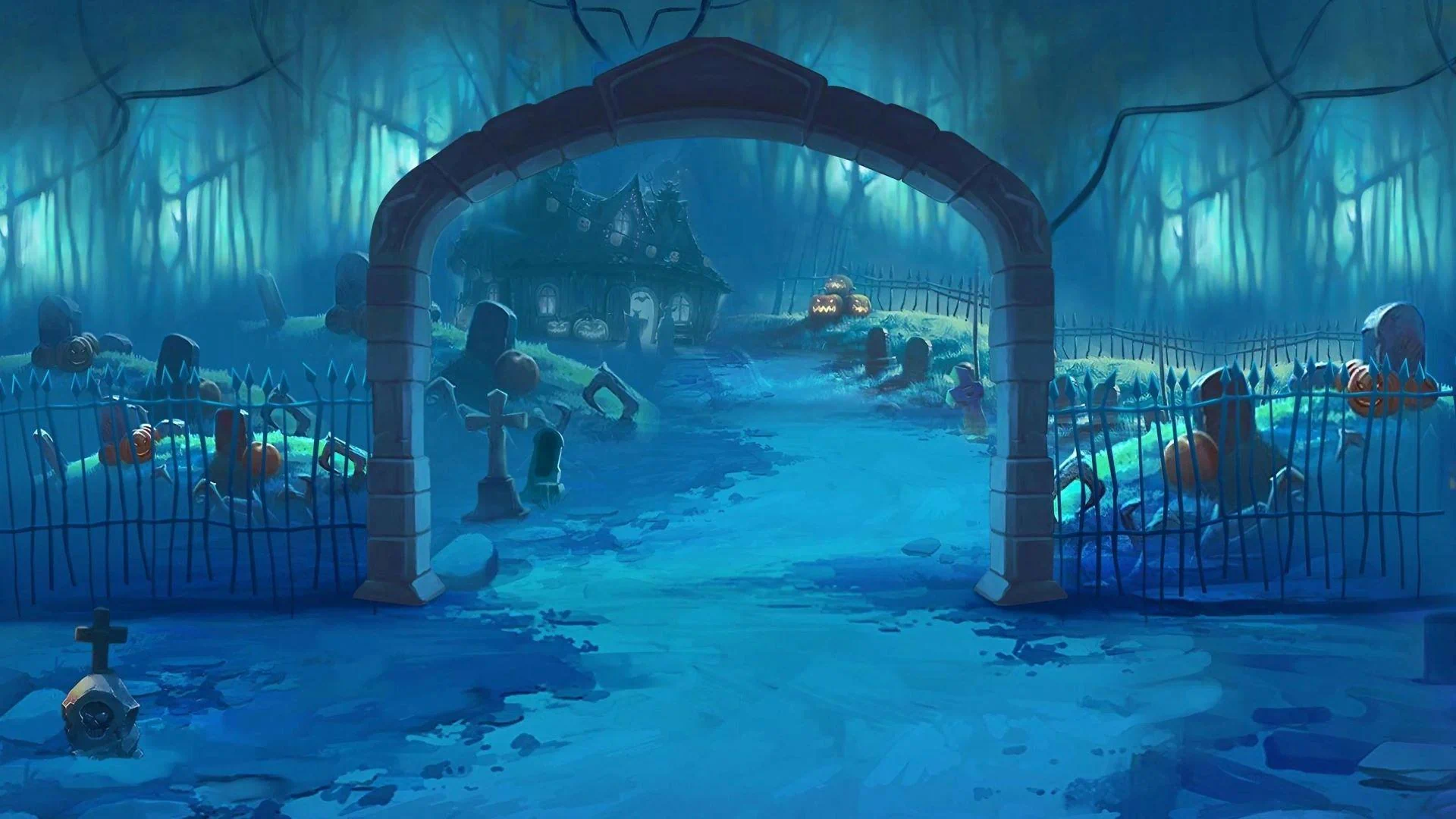 The cemetery transforms into a dazzling celebration. Skeletal figures dance with the living, sharing stories and music. Maracas shake with supernatural energy, and ghostly guitars play melancholic yet joyful tunes. The sound of drums echoes through the night as tombstones glow with an eerie light.
