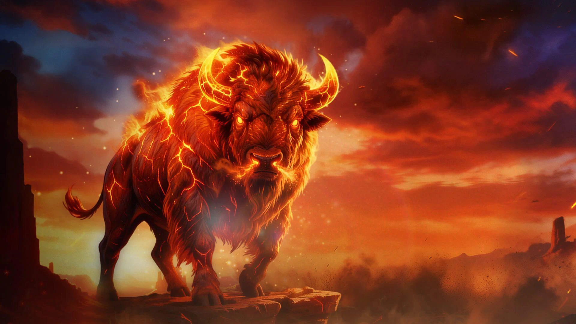 The legend speaks of extraordinary fortune awaiting those who dare ride alongside the Fire Buffalo during its eternal stampede. Magnificent treasures beyond imagination lie scattered across the golden plains, waiting to be claimed by those bold enough to chase the flames and follow the thundering herd into the blazing horizon.
