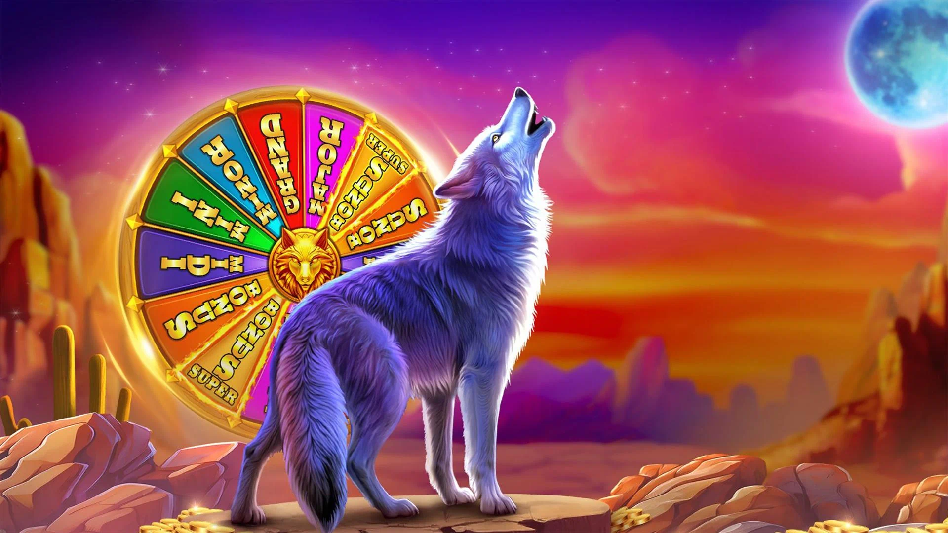 Hit 6 or more Moon symbols or a combination of 5 Moon symbols with at least 1 Gold Moon symbol or land on Super Bonus during the Bonus Wheel feature to trigger the Super Bonus feature.