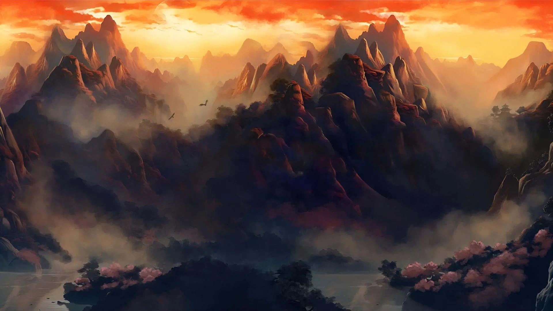 In ancient China, nestled between misty mountain peaks where the sky burned with golden sunset hues, lay the fabled House of the Dragon. Local villagers whispered of its existence, a grand temple adorned with crimson pillars and jade-green tiles, said to appear only during the Year of the Dragon King - once every sixty years.